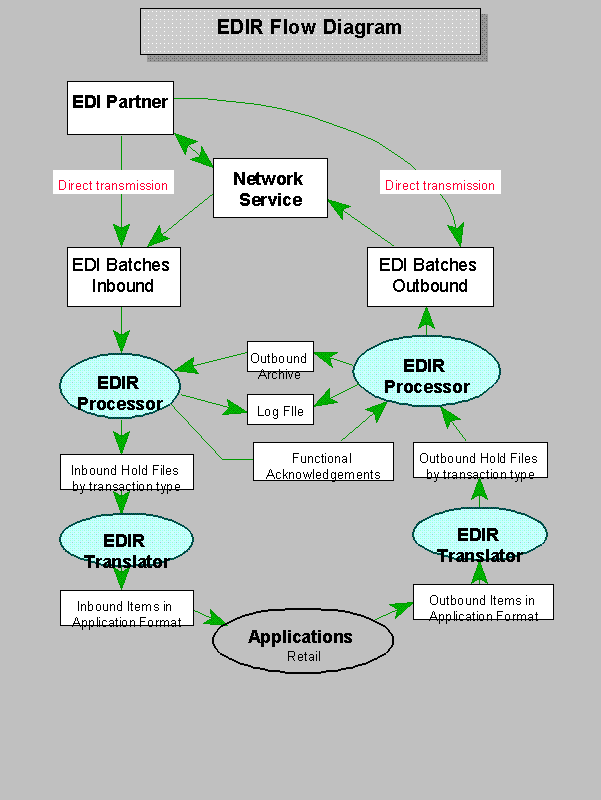 Appended is a diagram that illustrates the flow of activities for the receiving and transmission of EDI transaction sets.